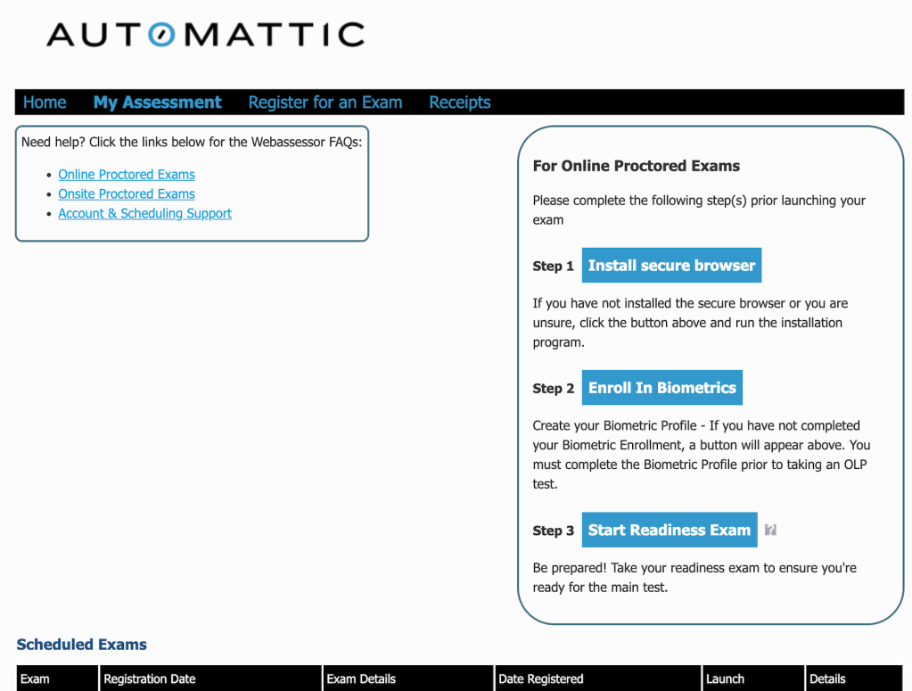 When your exam is scheduled, you will see this information under the ‘My Assessment‘ tab.